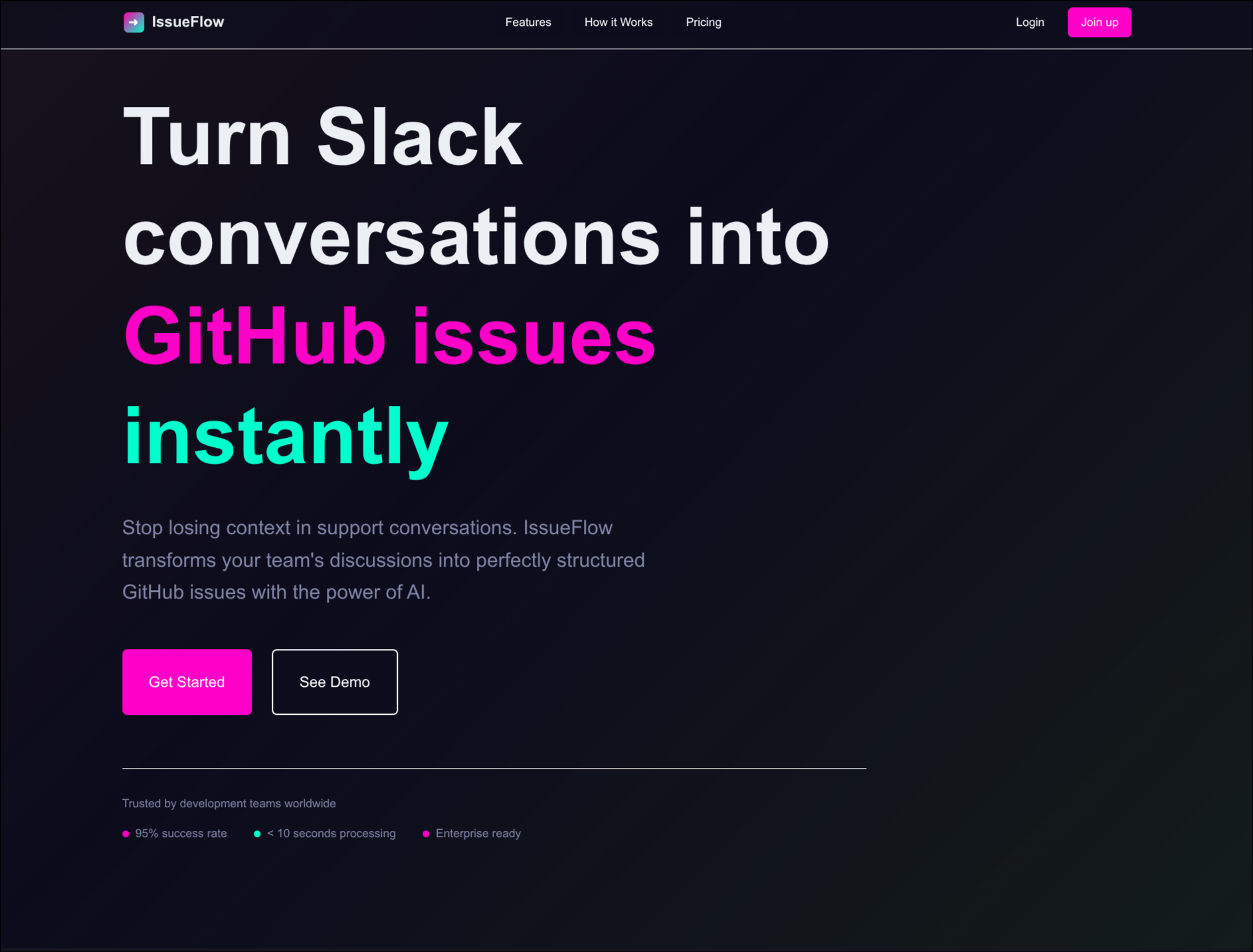 IssueFlow is an AI-powered bot that lives in your Slack workspace and watches for conversations that should become GitHub issues.